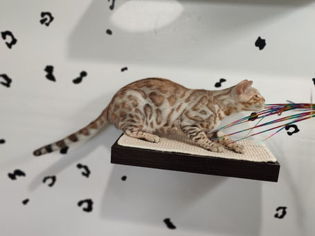Wisper is our gorgeous brown Bengal with Emerald green eyes, she is a long and tall girl who likes to play and is also super sweet. She is health tested clear through optimal selection and HCM screened Normal. She carries one copy of cs so she can produce snow lynx kittens as well as brown and silver kittens when paired with our Stud X